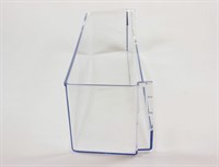 Lower shelf in the refrigerator door, often used as a milk shelf. The door shelf can easily be replaced without the use of tools.